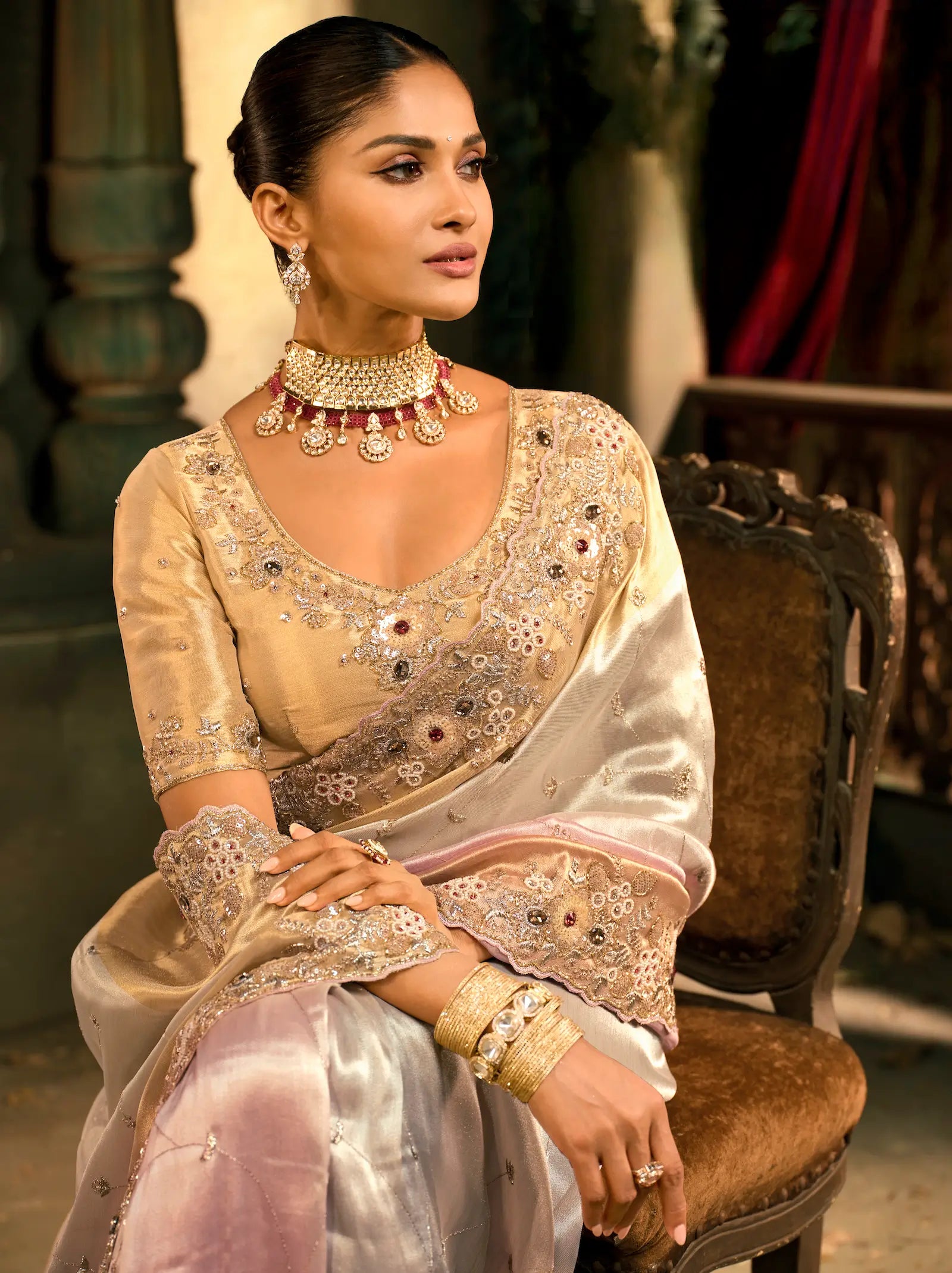 Work: Heavy Zari & Sequins Embroidery With Cutdana, Moti & Emerald Work