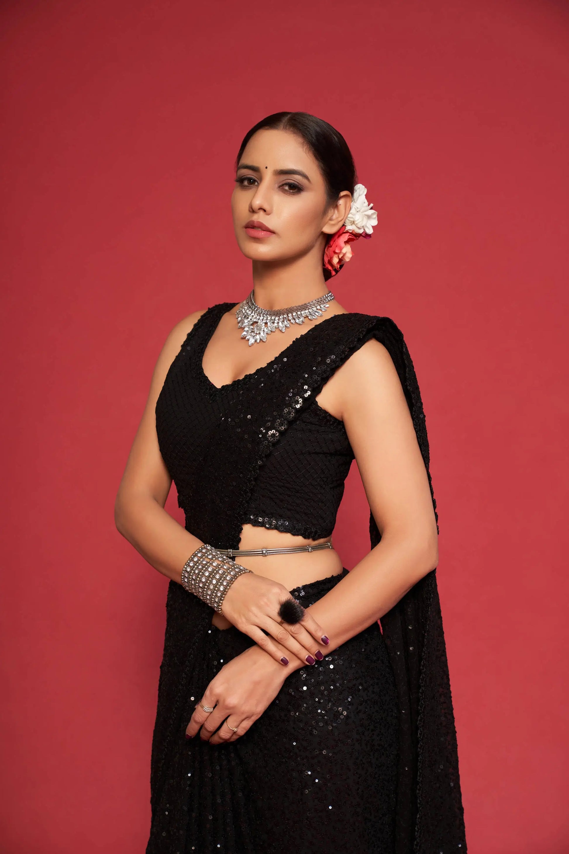 Black Georgette Saree with Thread And Multiple Sequins Embroidery Work
