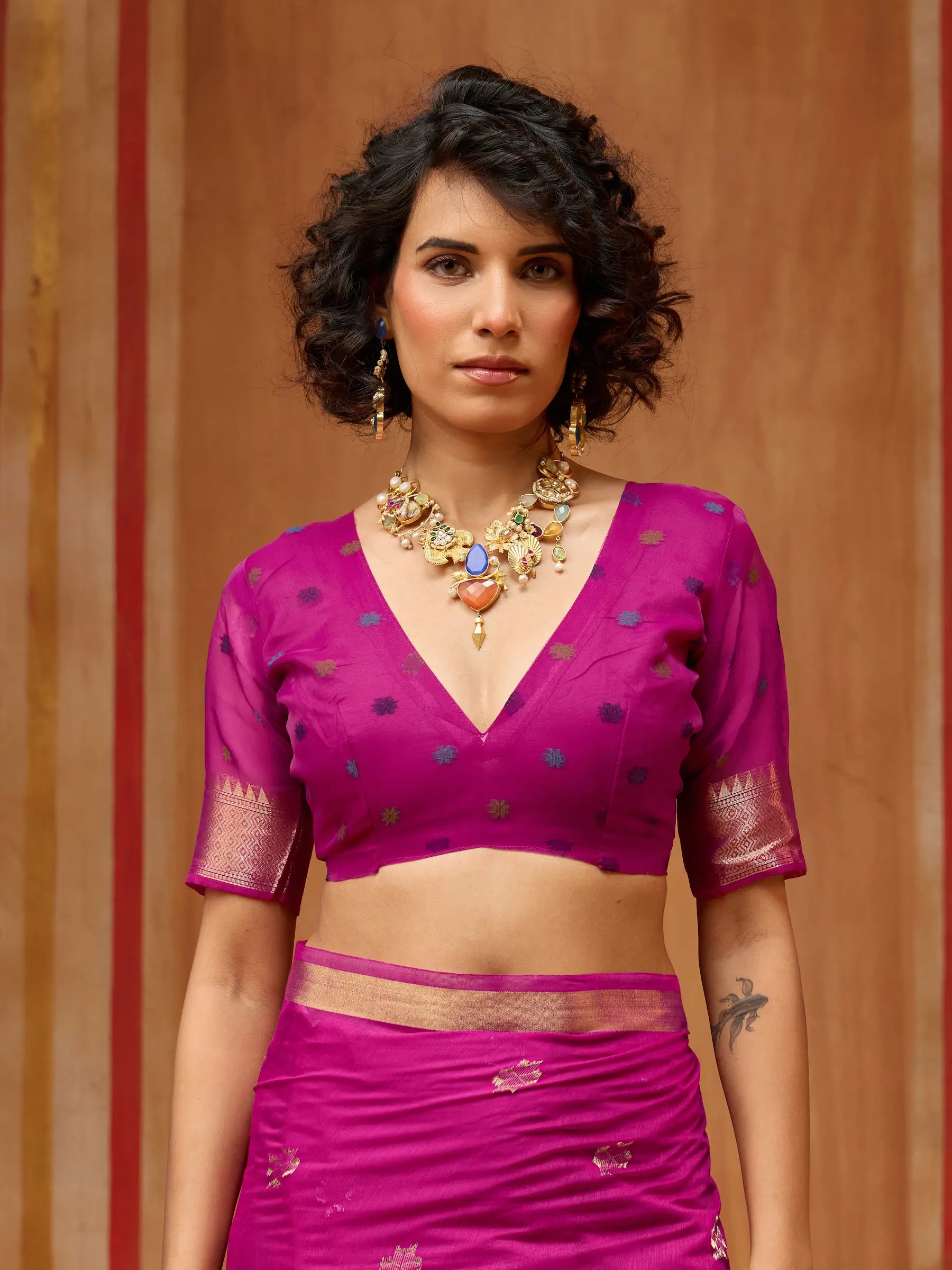 Off White Khadi Cotton Lehenga Choli With Hot Pink Gaji Silk Dupatta