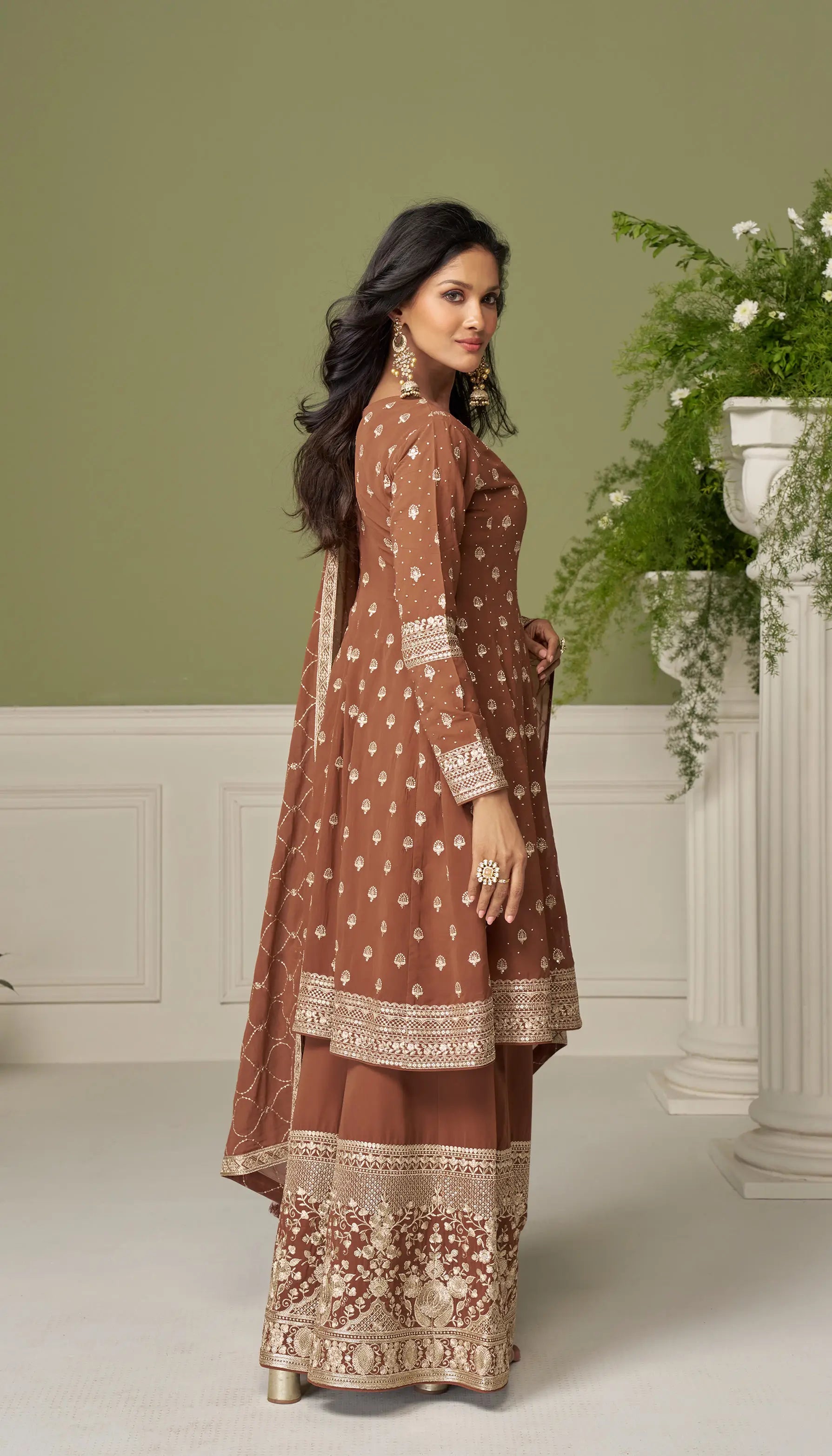 Coffee Brown Hand-Embroidered Salwar Palazzo Set