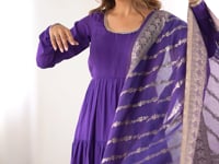 Dark Purple Silk Gown With Jacquard Banarasi Dupatta
