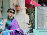 Elegant hot pink satin crepe saree adorned with refined digital prints. Paired with a matching digital print blouse in the same fabric for a coordinated, modern ethnic look.