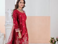 Dusty Pink Shimmer Silk Embroidery Work Palazzo Suit