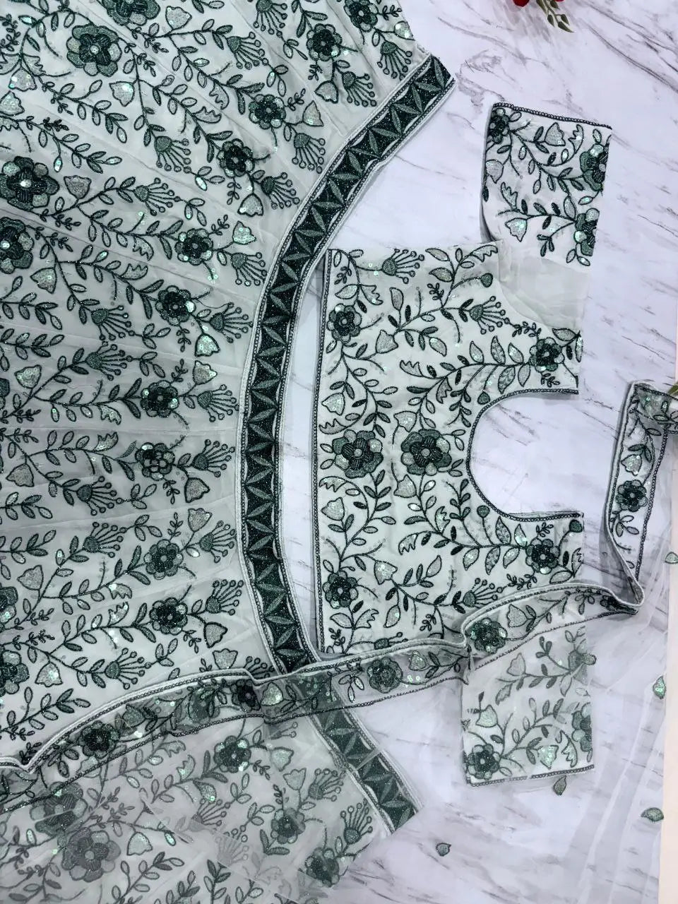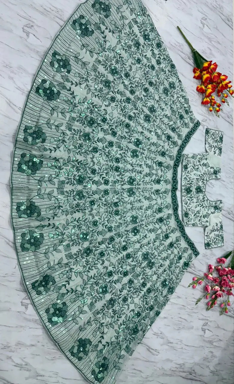 Light Green Georgette Lehenga With Thread Dori Heavy Sequins Embroidery Work