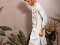Celebrate Festival in style with our new men’s kurta set! Crafted in soft viscose silk with intricate multi-thread and sequins work, paired with comfortable cotton pants—perfect for any festive, occasion and garba nights.