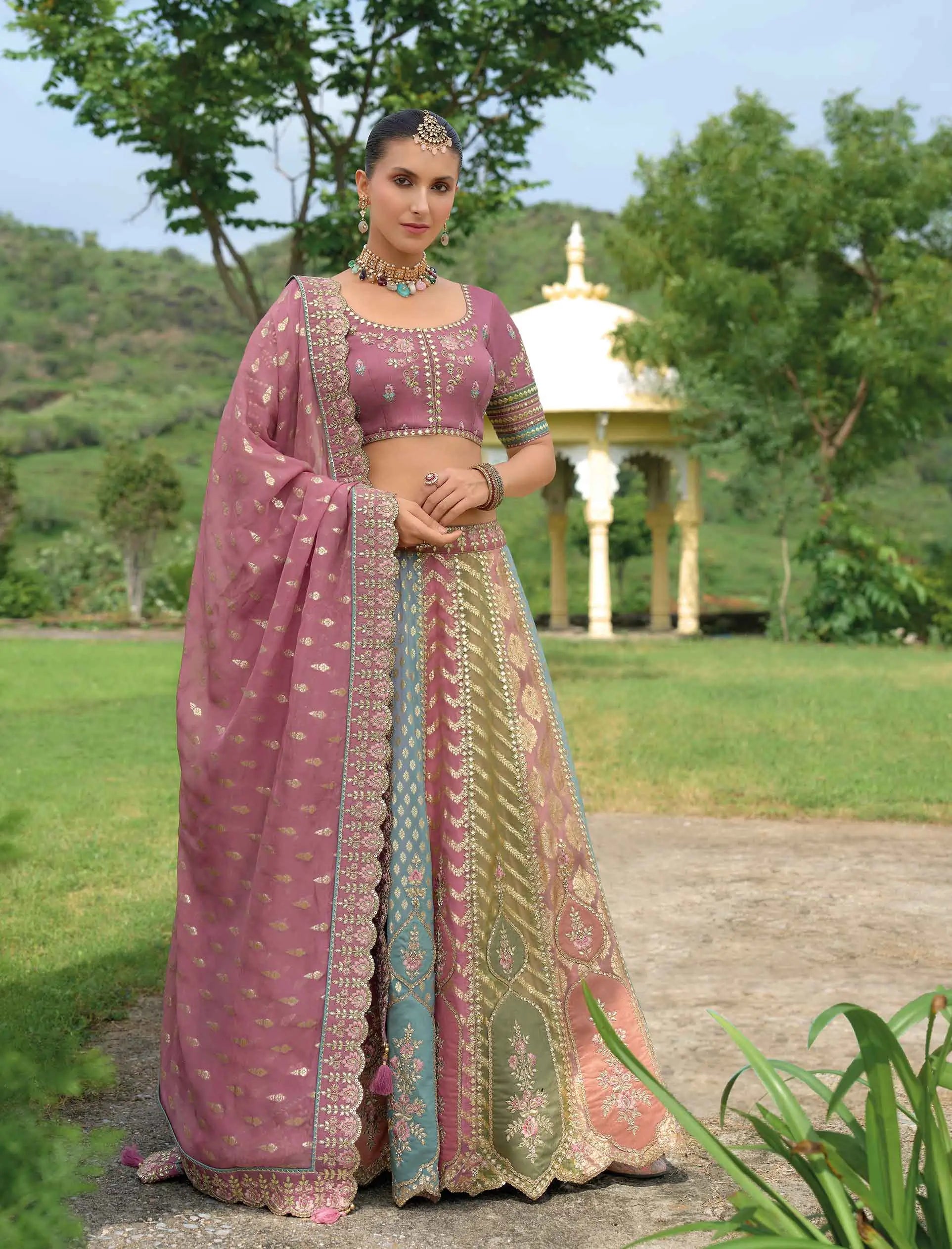 Mauve Bridal Lehenga With Heavy Khatli & Embroidery Work