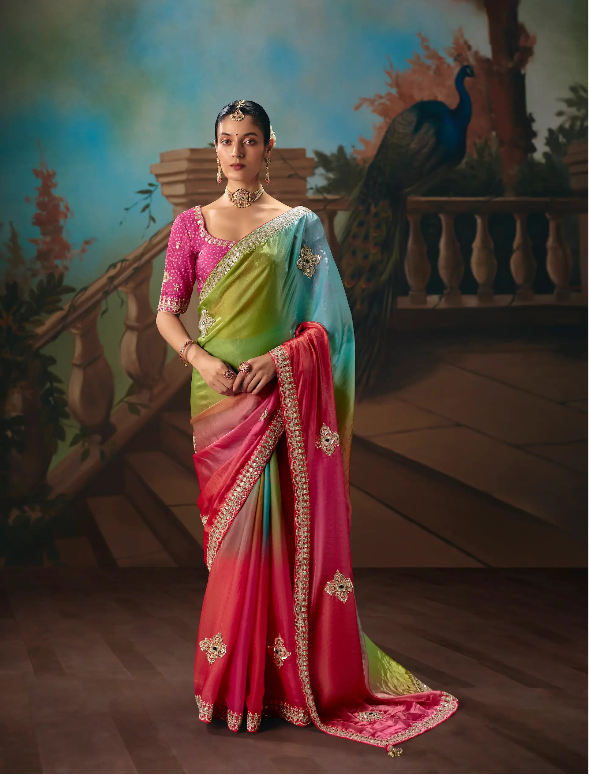Multicolor Fancy Embroidered Saree