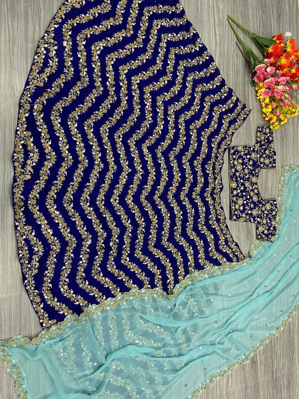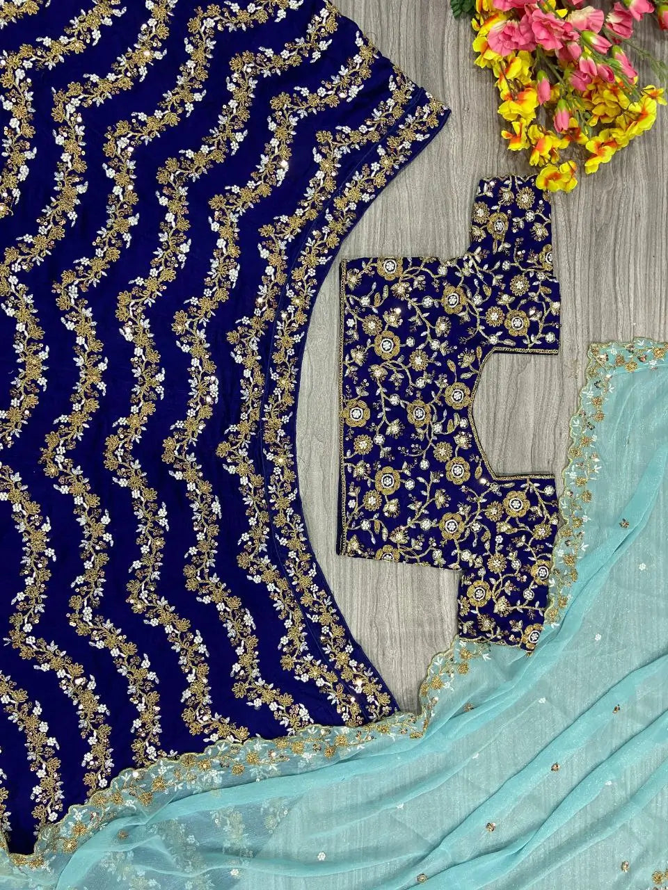 Navy Blue Chinnon Silk Lehenga With Coding Sequins And Embroidery Work