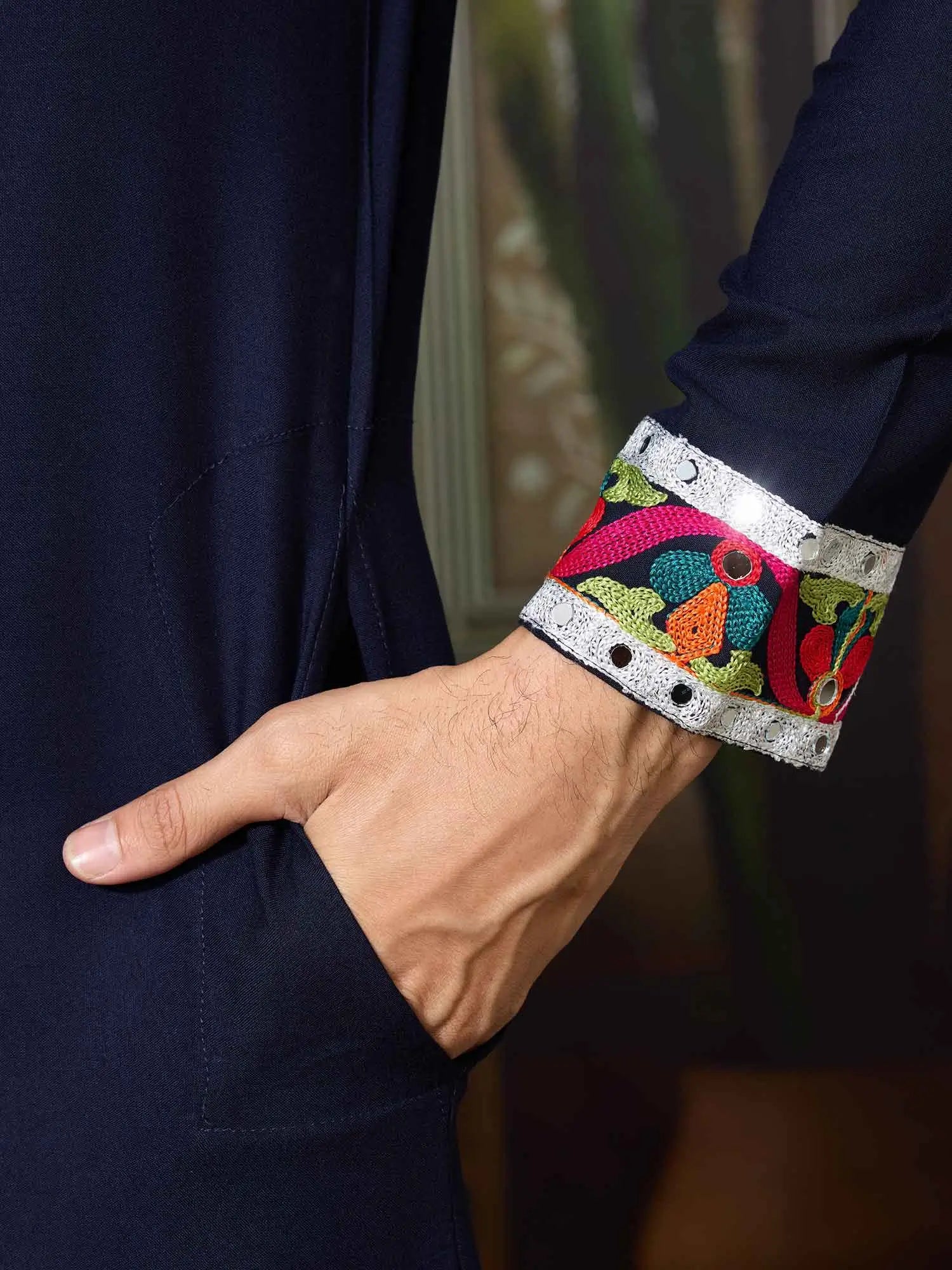 Navy Blue Navratri Kurta Set Multi Thread And Real Mirror Work
