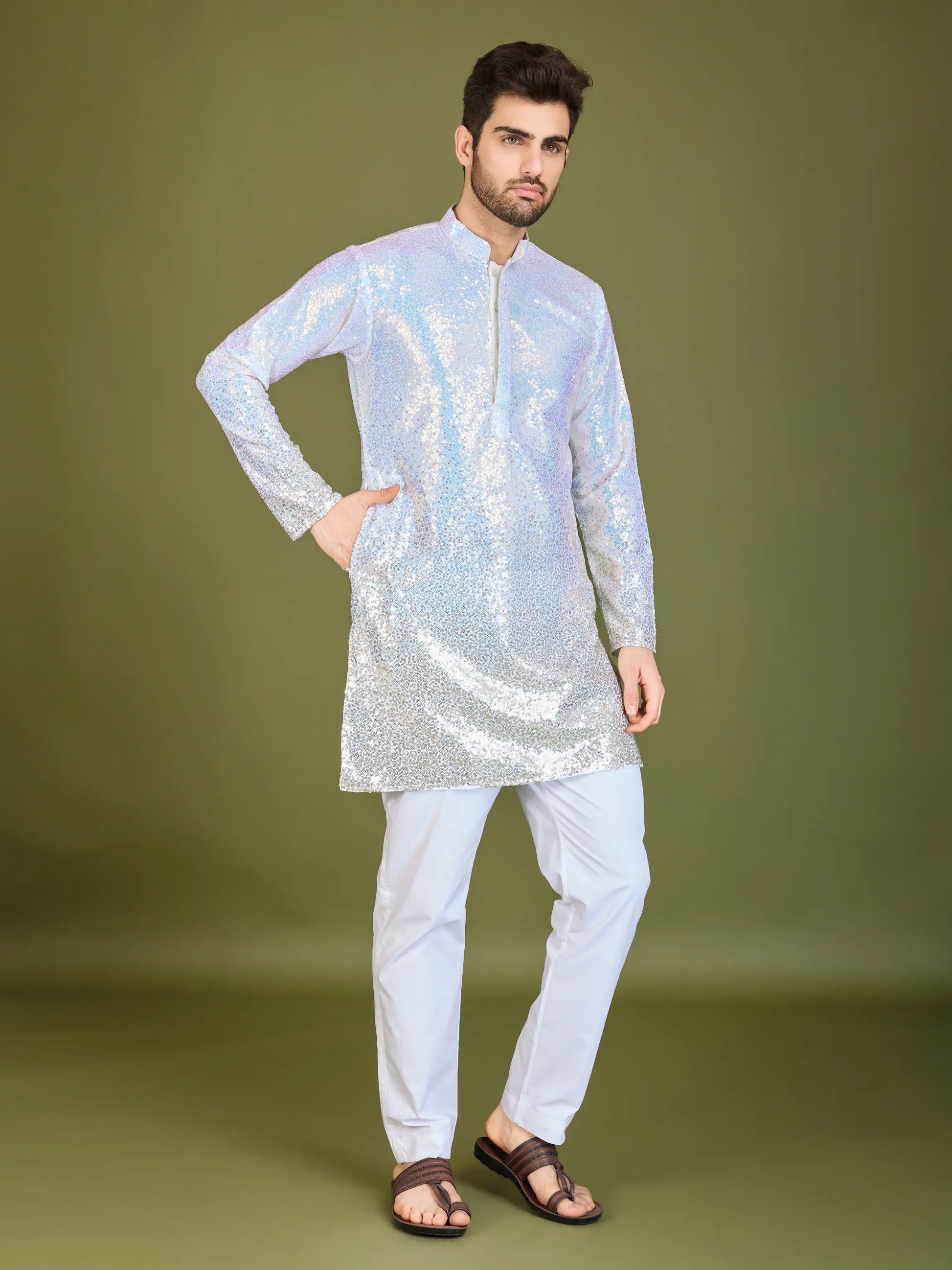 This exquisite Ombre Yellow Georgette fabric kurta features intricate thread and sequins embroidered work, making it perfect for adding a touch of elegance to any special occasion. Ideal for weddings, religious ceremonies, and cultural events, it beautifully blends tradition with modern flair. The delicate embroidery adds a timeless charm, elevating the overall aesthetic.