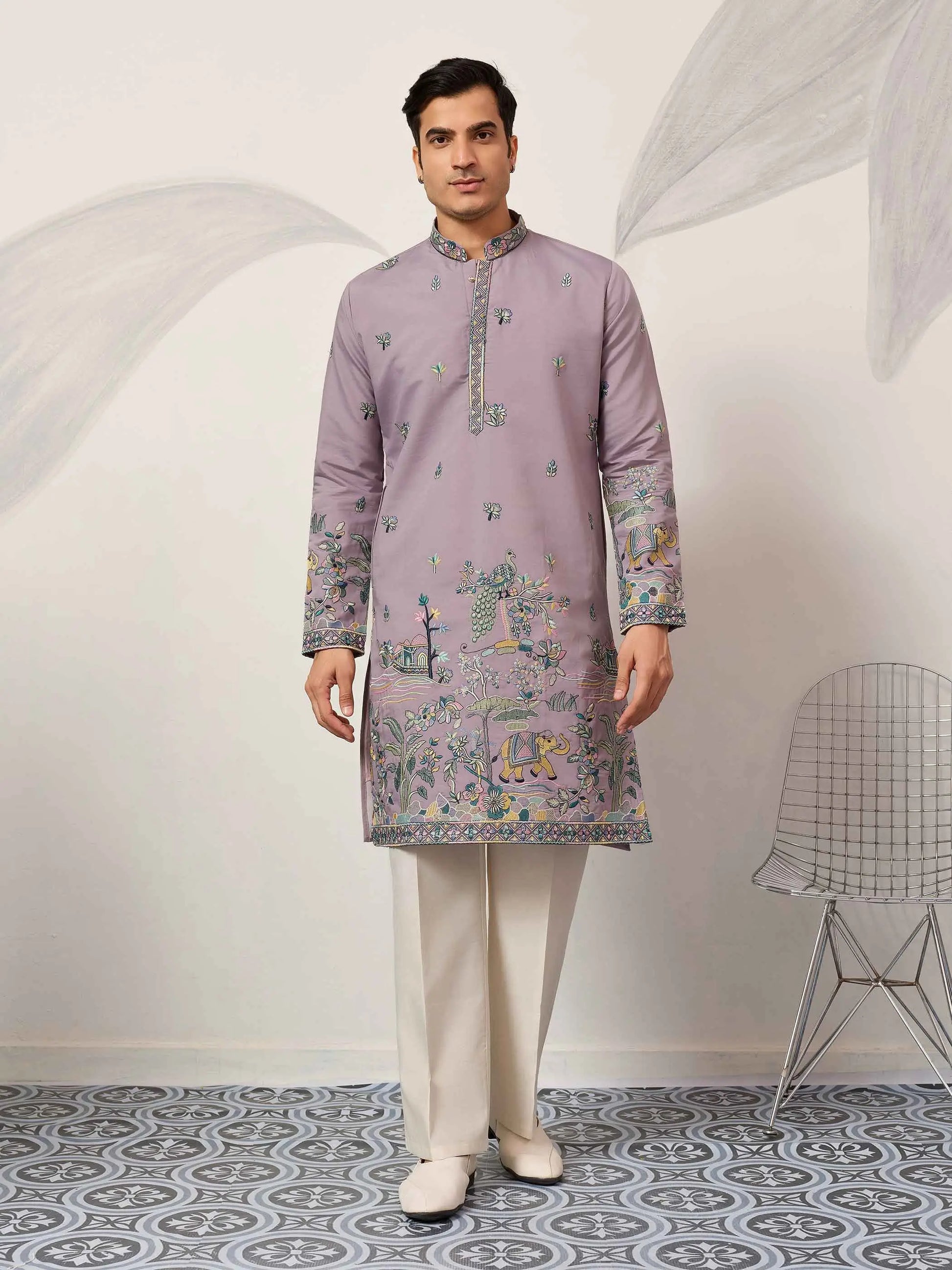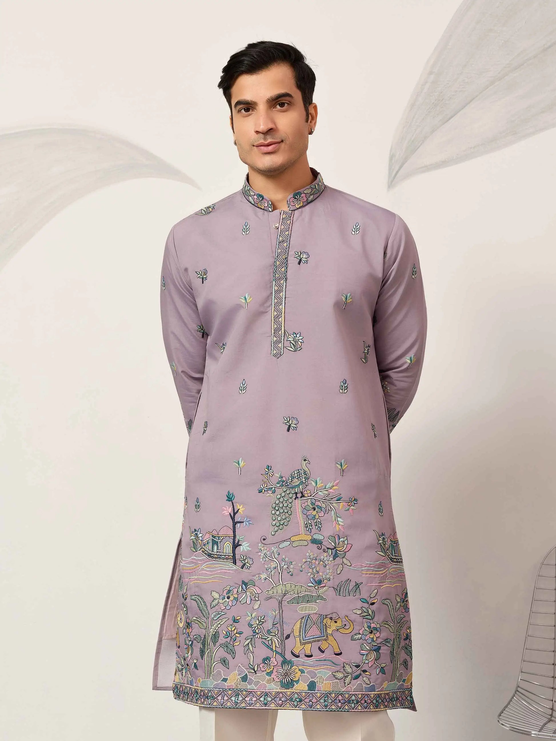 Pastel Purple Embroidered Kurta Set