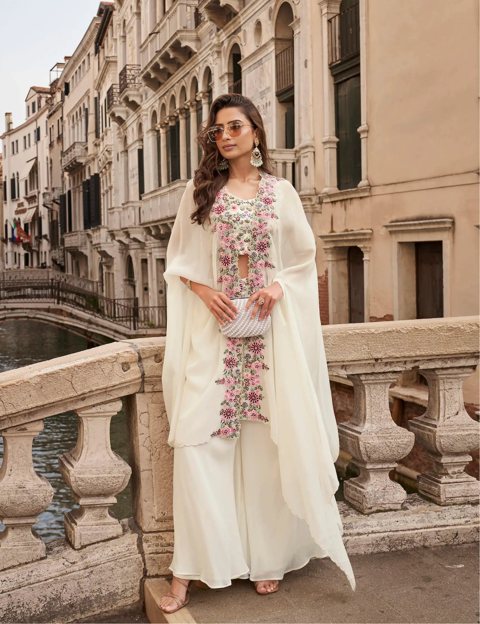 Pearl White Embroidered Indo Western Set