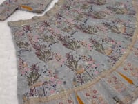 This Powder Grey kasturi silk lehenga features elegant dori, thread, and sequins embroidery. Paired with a matching blouse and a net dupatta, it offers a graceful look for weddings and festive occasions.