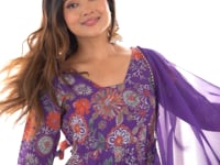 Purple Floral Print Kediya Style Kurta Set With Dupatta