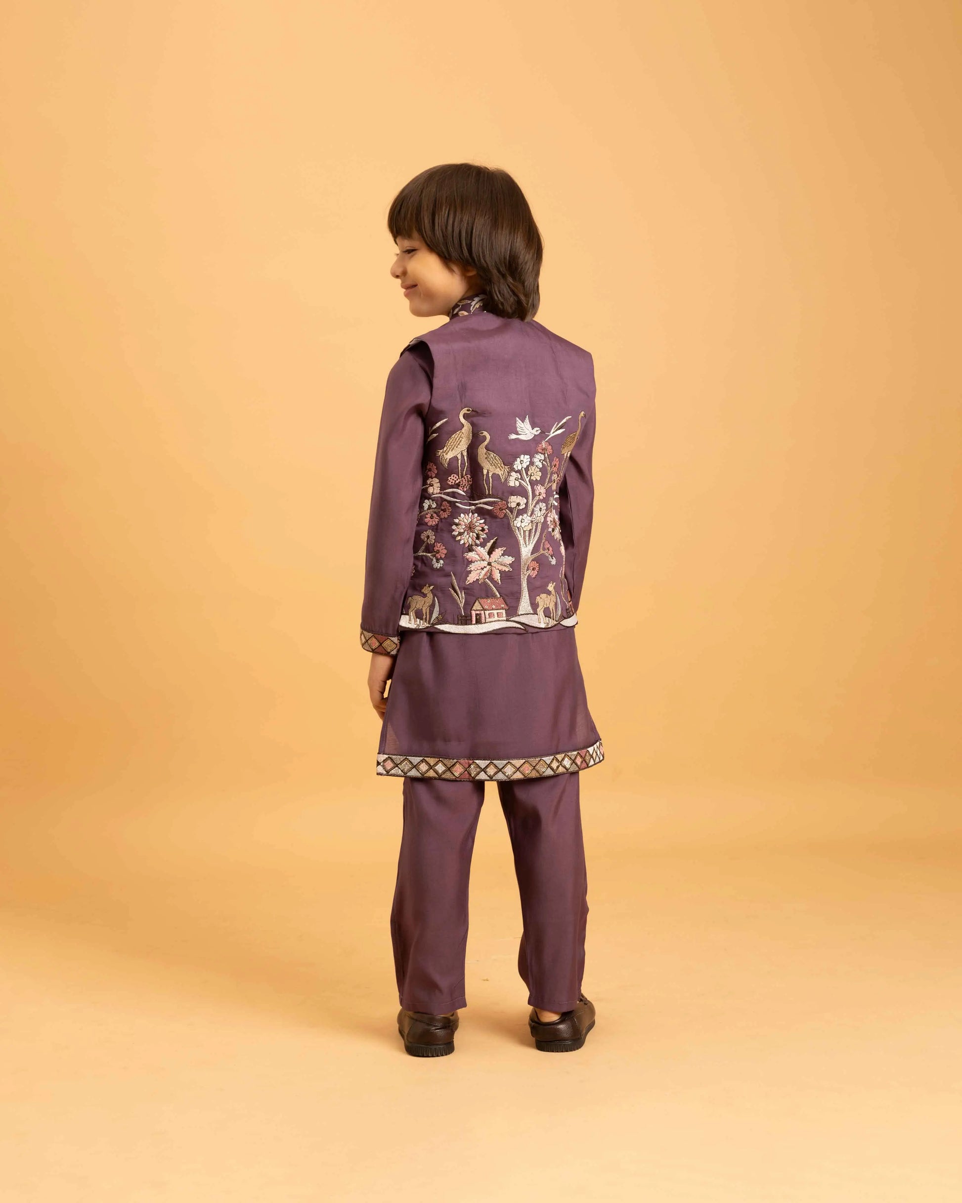 Introducing our new kid’s wear collection in premium viscose silk. The jacket and kurta features intricate thread and sequins embroidery. Paired with matching pant--Perfect for weddings, cultural events, parties, and musical nights,  this outfit exudes timeless elegance.