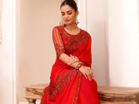 Red Shaded Silver Chiffon Party Wear Saree With Sequence & Thread Embroidery Work