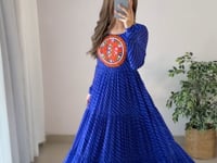 Royal Blue Laheriya Print With Gamthi Patch Work Navratri Gown