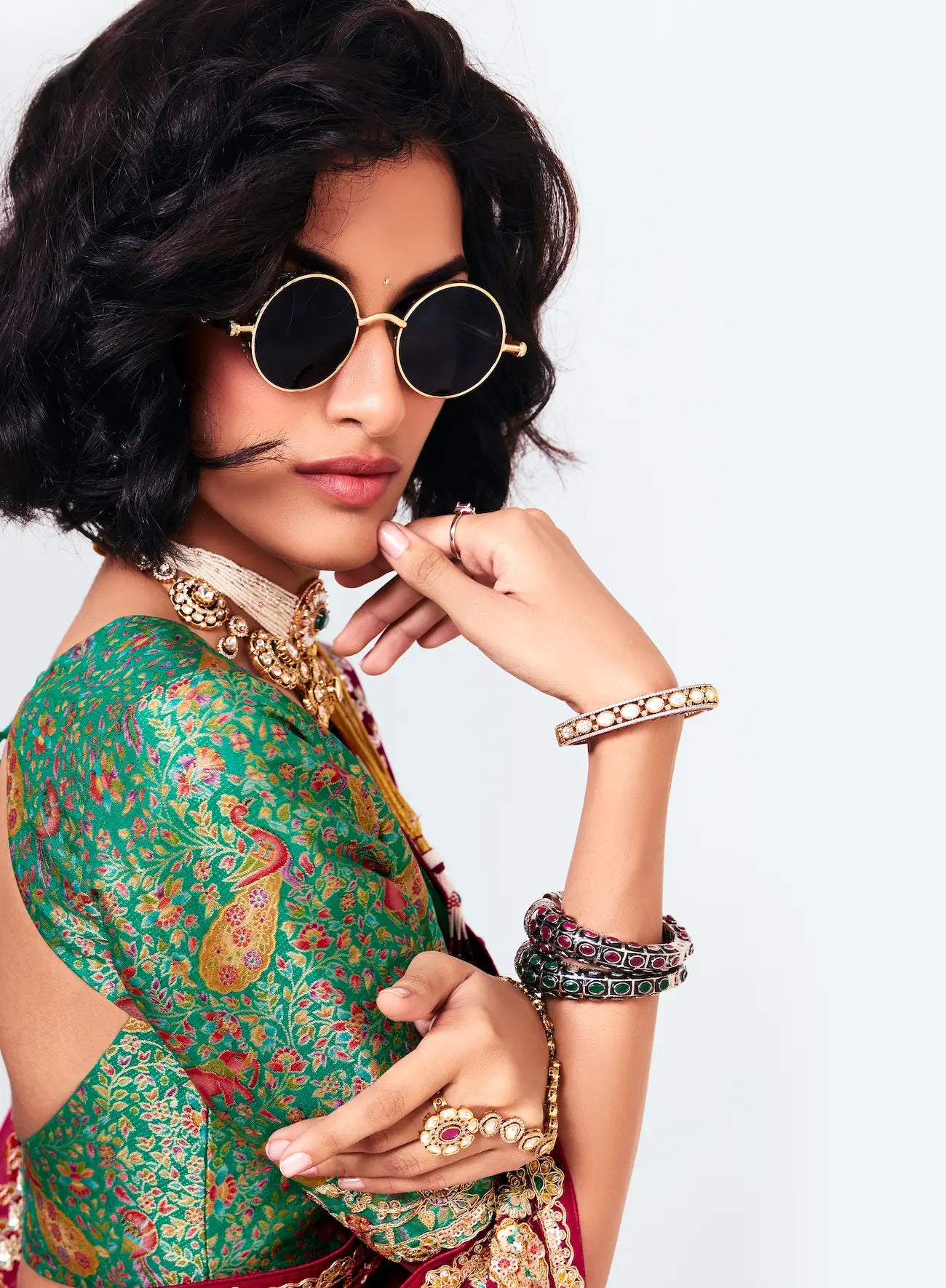 Work: Dhaga, Sequins & Thread Embroidery Work With Piping Border & Tassels
