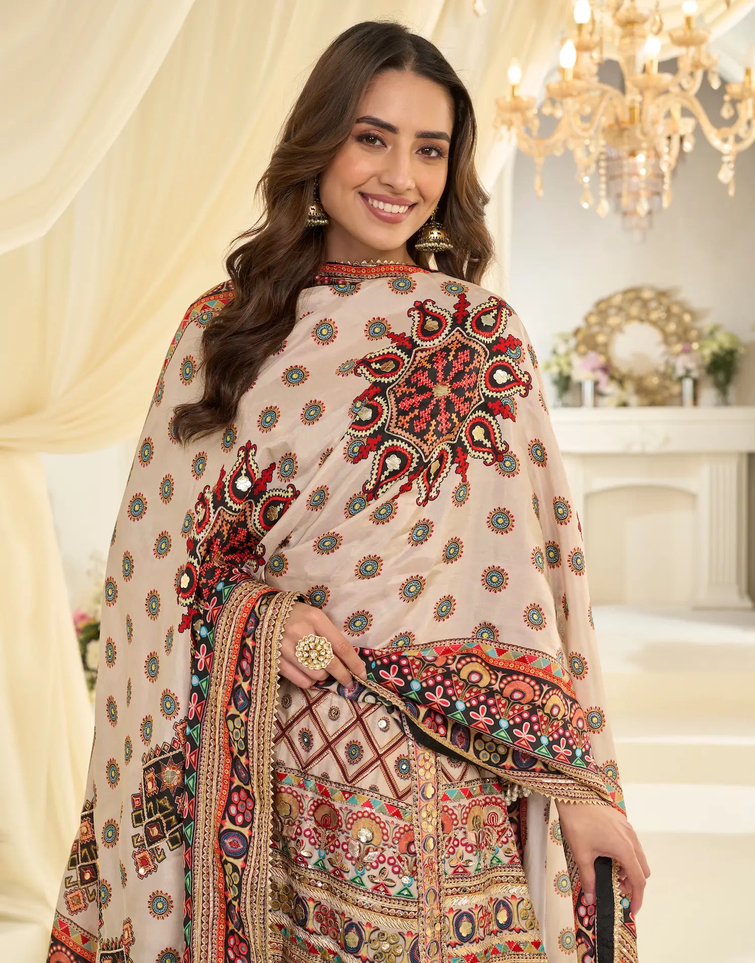 Multi Color Floral Printed Hand Work Pure Soft Organza Lehenga With Dupatta
